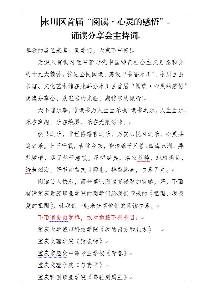 三、永川区首届“阅读·心灵的感悟”诵读分享会