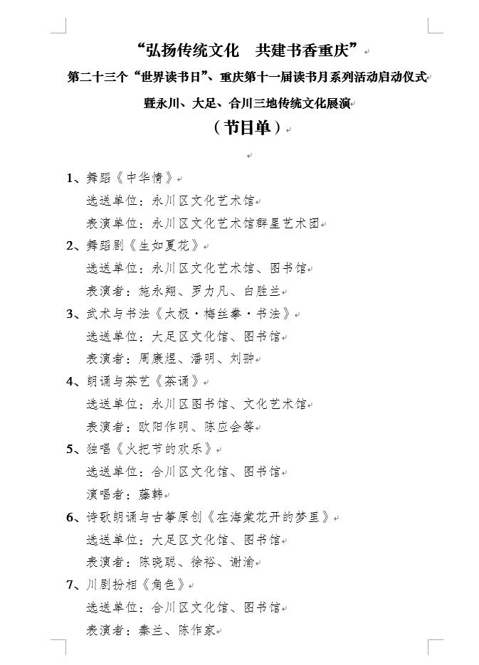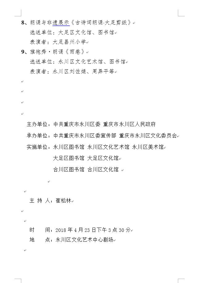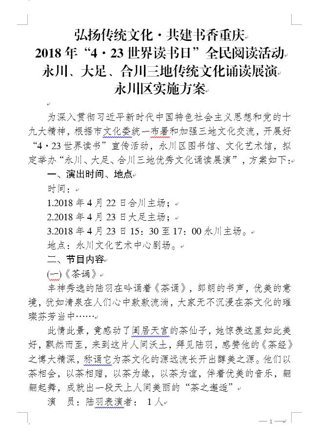 四、3 弘扬传统文化·共建书香重庆2018年“4.23世界读书日”全民阅读活动永川、大足、合川三地传统文化诵读展演